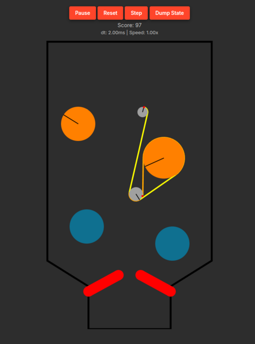 No open source implementations of CableJoints existed, so for ca two and a half months (Apr 3, 2025 - Jun 24, 2025), I implemented a 2d version of a CableJoints and an XPBD physics engine. Inputs, outputs, rendering, double implementations in Python and Javascript, CI testing, user interaction, constraints, friction, etc. End-to-end, specialized to our needs.